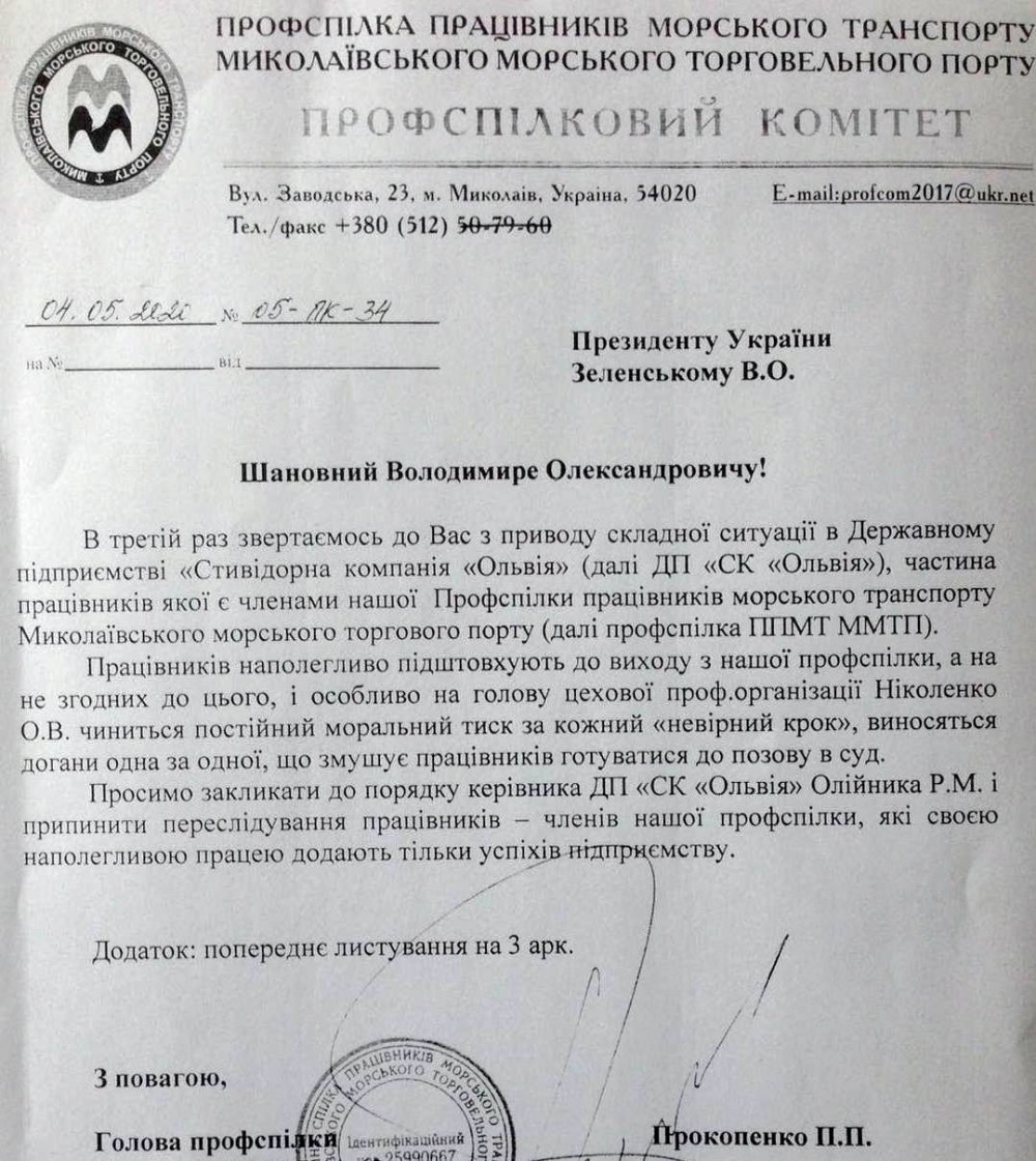 Далеко не всех представителей трудового коллектива устраивало то, что происходит в ГП “СК “Ольвия”. Тем более, что на слуху был пример Херсонского морпорта, который за несколько лет был доведён его менеджментом до полного банкротства. Устав от ситуации, когда все год от года только ухудшается, работники, добросовестно проработавшие многие годы на предприятии, стали за него бороться.