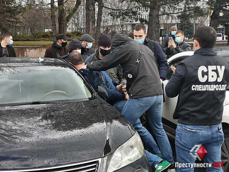 В среду, 17 марта, в Николаеве на Ингульском спуске возле Соборной площади сотрудники УСБУ с сотрудниками Следственного управления ГУНП задержали жителя Николаева при получении им неправомерной выгоды.