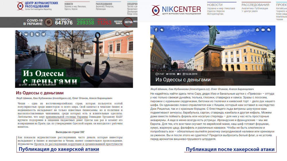 Центр журналистских расследований уже восстановил публикации и готовит заявление в полицию.