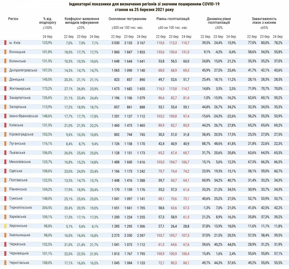Об этом сообщил МОЗ, опубликовав ежедневные признаки для определения региона с широким распространением COVID-19.