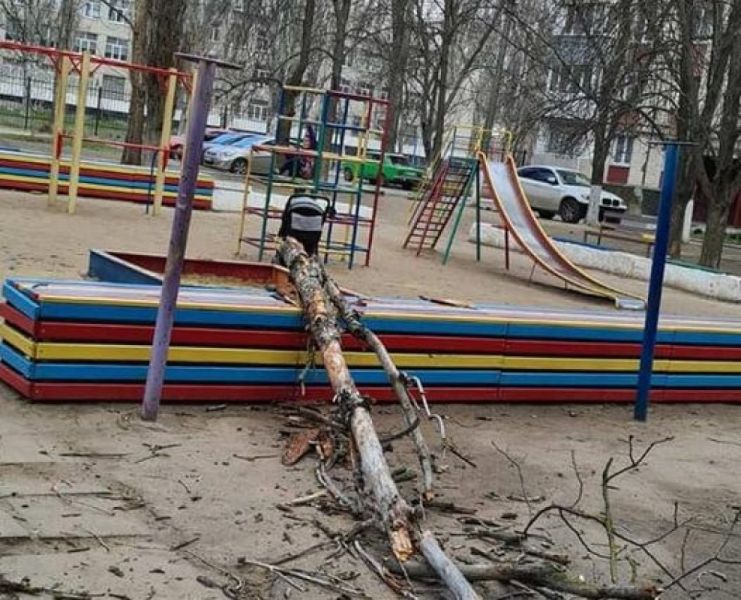 Утреннее неприятное событие во дворе дома № 54 по пр. Мира. Совершенно случайно никто не пострадал! Детская площадка — эпицентр сбора детей по всему микрорайона, потому что площадка действительно достойная", — отметила она.