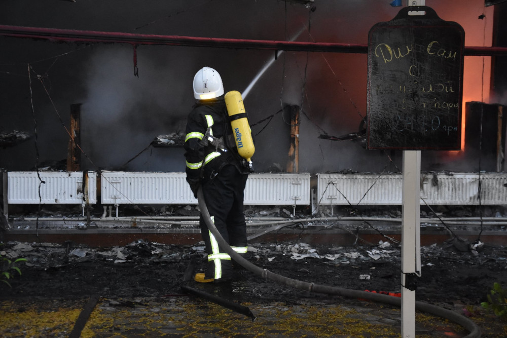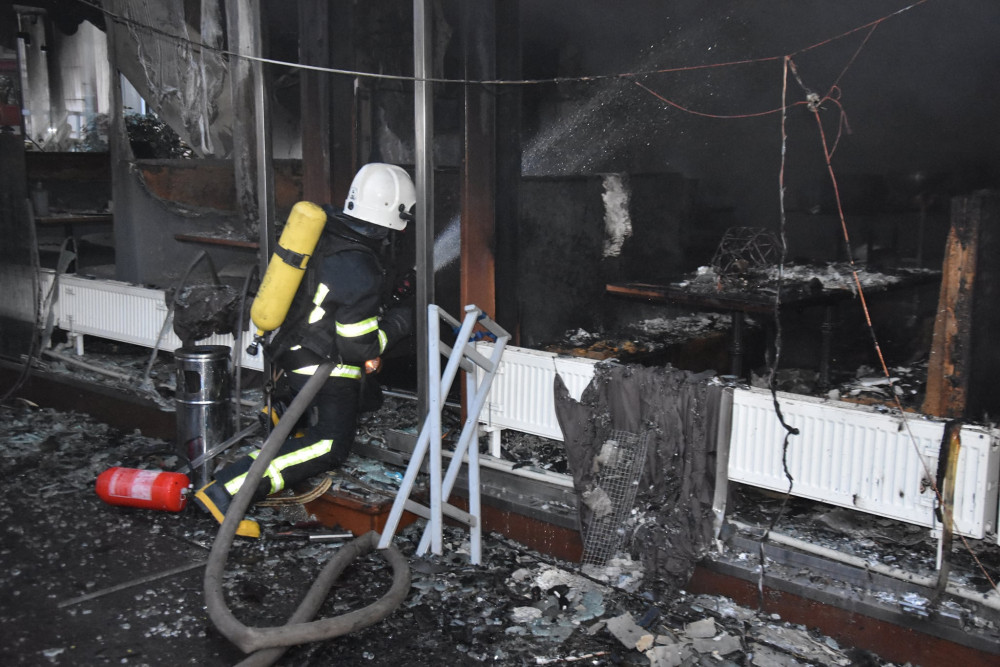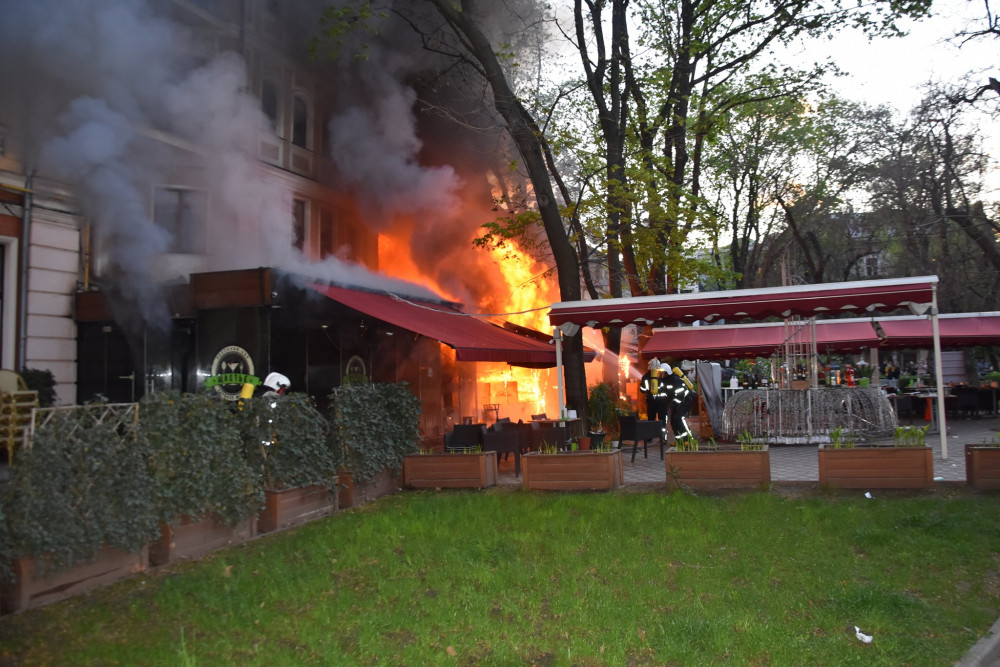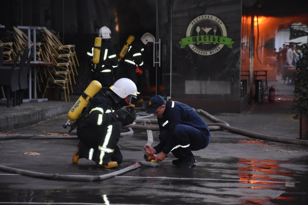 По прибытии на место менее чем за 10 минут, пожарные увидели, что ситуация изменилась. Подвальное помещение было уже очень сильно задымлено, а на первом этаже здания, в помещении ресторана "Щастье" открытым огнем бушевал пожар, вплотную к соседнему ресторану "Сальери". При этом на других этажах, с второго по пятый, пятиэтажного дома находится отель "Палас Ройял".