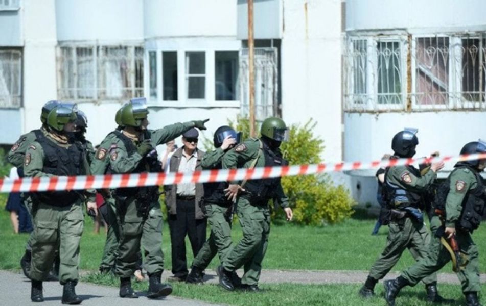 Российские СМИ сообщают, что несколько мужчин зашли в школу с оружием и начали стрелять. Один из стрелков выпрыгнул из окна и побежал в сторону улицы Туганлык, там его задержала полиция.