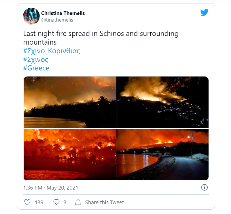 Дым виден по всей южной Греции. О погибших и пострадавших в результате пожара не сообщается.