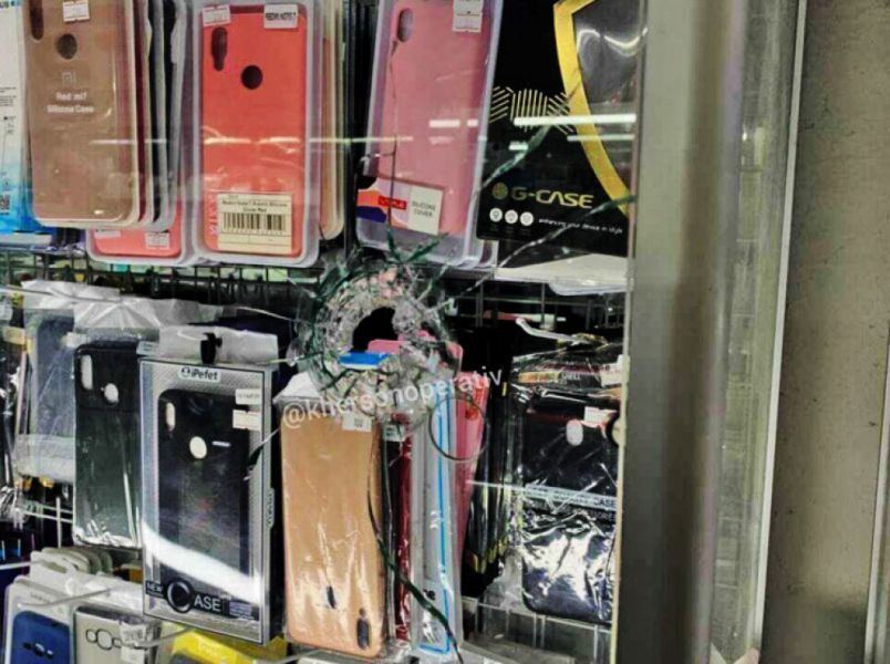 Оппонент достал травматический пистолет и выстрелил. Пуля попала в витрину магазина по продаже аксессуаров для мобильных устройств. Затем ударил рукояткой пистолета заявителя в ухо. Последний в ответ швырнул в стрелка кирпичом. После этого женщина с ее мужем с места происшествия уехали. Сейчас их личности установлены. Также известно, что оружие официально зарегистрировано.