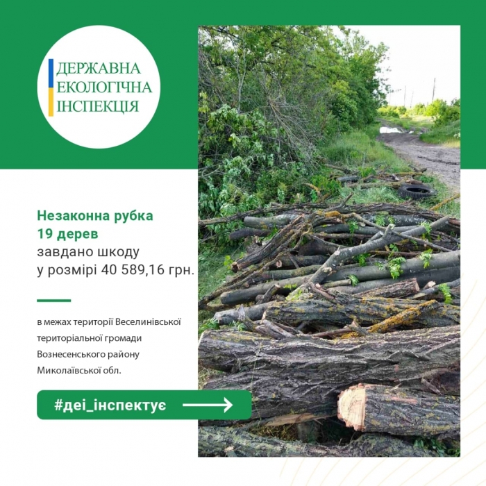 Во время проведения рейдовой проверки на территории Веселиновской территориальной общины Вознесенского района Николаевской области выявлен факт незаконной вырубки 19 деревьев и кустарников местным жителем.