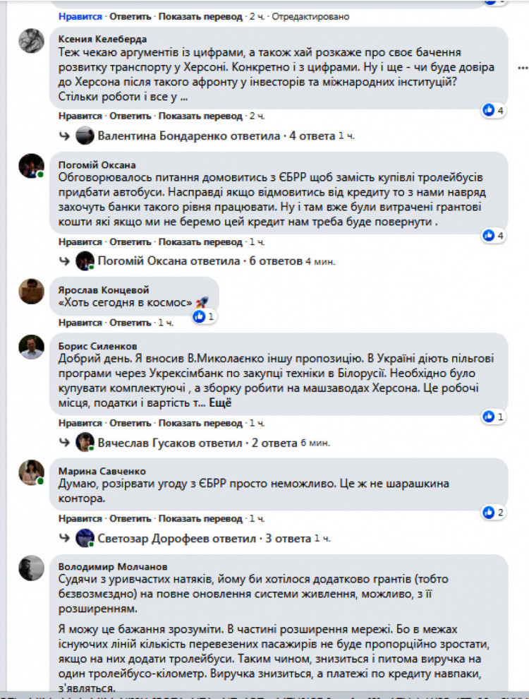 Херсонский городской голова Игорь Колыхаев намерен инициировать пересмотр условий уже заключенного с Европейским банком реконструкции и развития (ЕБРР) соглашения о кредитовании на приобретение новых троллейбусов для коммунального предприятия "Херсонэлектротранс".