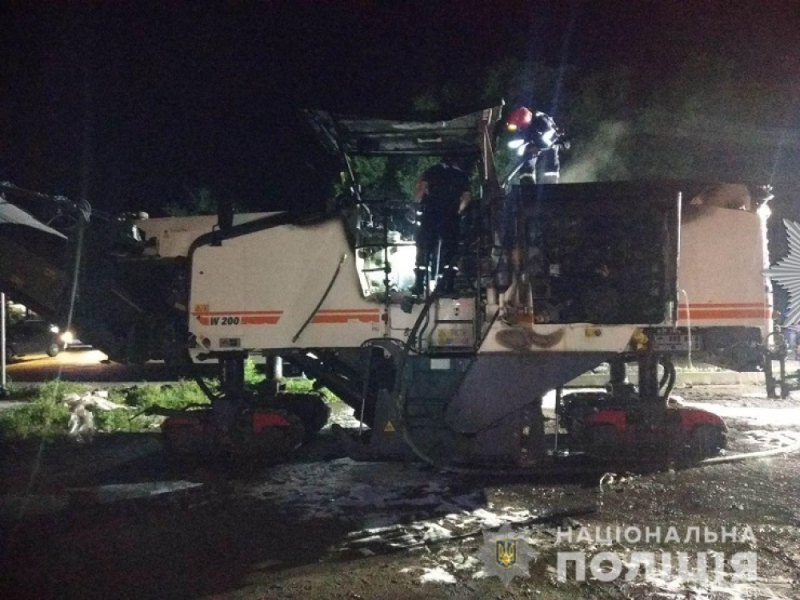 Главное управление Нацполиции Николаевской области разыскивает неизвестных, которые подожгли ночью в микрорайоне Варваровка технику для ремонта дорог.