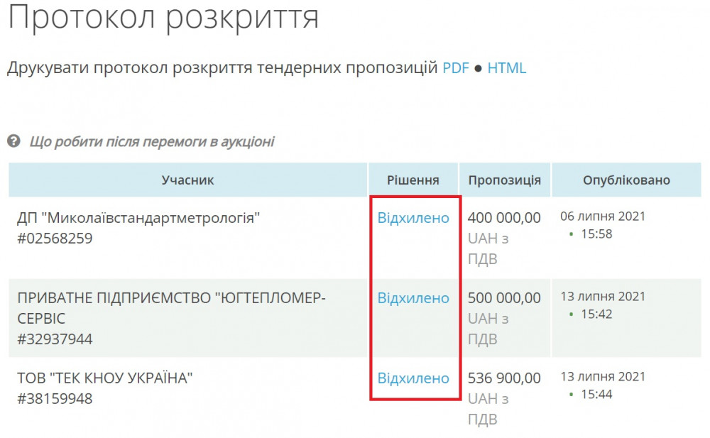 Об этом свидетельствуют данные системы публичных закупок ProZorro.
