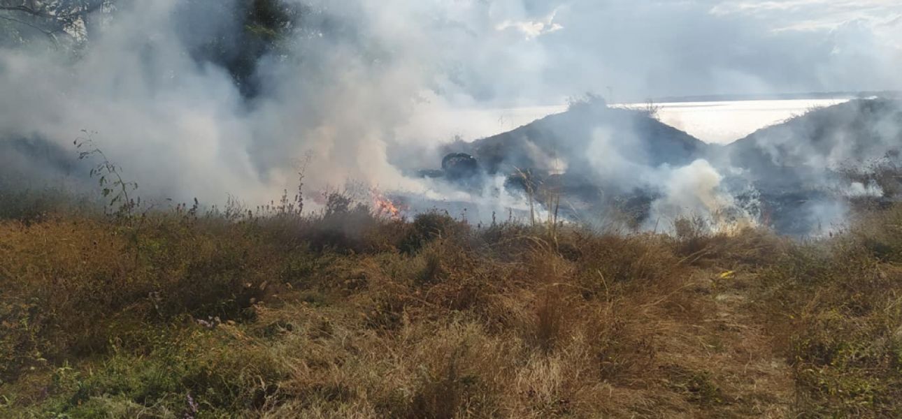 Какое-то быдло собрало все венки из кучи. Зажгло. А как огонь распространился — ушло … Не дожидаясь спасателей, начали ветвями сбивать огонь. Присоединились люди. Жаль деревьев на побережье … сгорели, но мы остановили огонь, не пошел к реке, — написала Наталья Панаший.