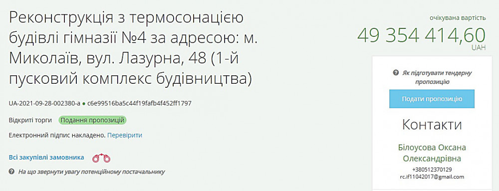 Ожидаемая стоимость работ составляет 49 миллионов 354 тысячи 414 гривен. До 14 октября идет процесс подачи тендерных предложений, а на 18 октября запланировано проведение аукциона.