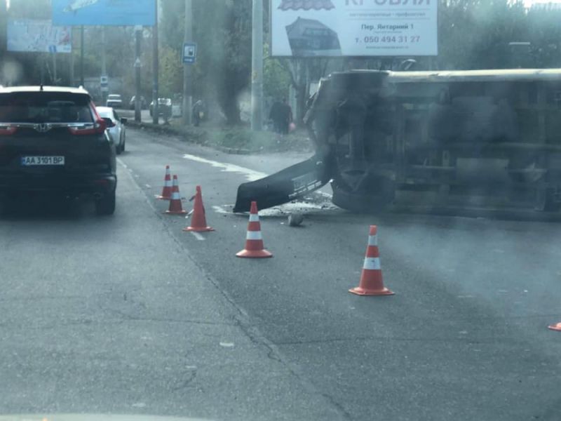 В Херсоне во время ДТП маршрутка перевернулась на бок
