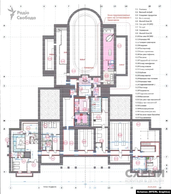 Видео, снятое журналистами уже в ноябре, зафиксировало значительный прогресс в ремонтных работах. Дополнительно «Схемы» получили в свое распоряжение чертеж — планы полной реконструкции и перепланировки дворца Медведчука площадью более двух тысяч квадратных метров.