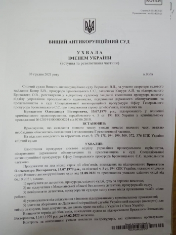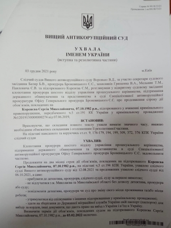Такое решение 3 декабря принял следственный судья ВАКС Владимир Воронько, передают НикВести.