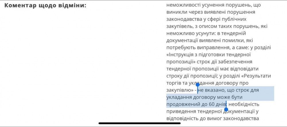 Как объяснили в “Прозорро”, право на продление сроков заключения договора на 60 дней в открытых торгах предусмотрено ч. 6 ст. 33 закона. Также отметили, что дополнительно указывать эту информацию не нужно. Решение о продление оформляется протоколом тендерного комитета. Следовательно, отменять торги не стоило, а ремонт можно было начать еще осенью. С этим согласны юристы.