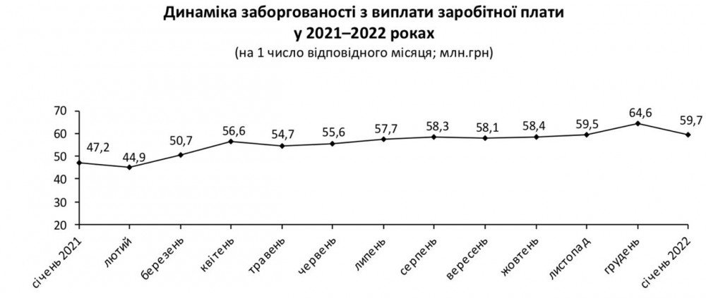 По состоянию на январь 2022 года жителям Николаевщины задолжали 59 миллионов 675 тысяч гривен заработной платы.