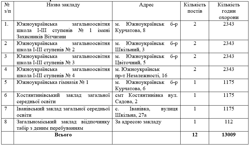 Управление образования Южноукраинского горсовета объявило тендер на услуги по предоставлению охраны в школах громады за 1,7 миллиона гривен.