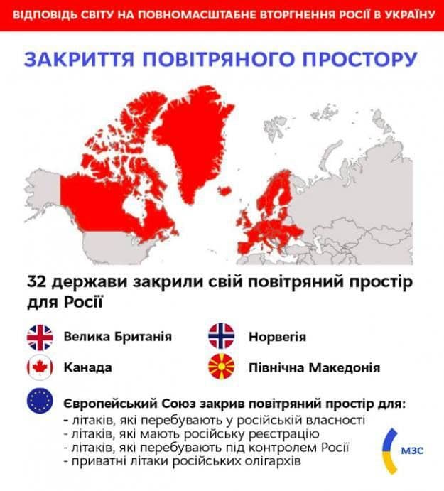 Уже 32 страны закрыли свое воздушное пространство для самолетов России.