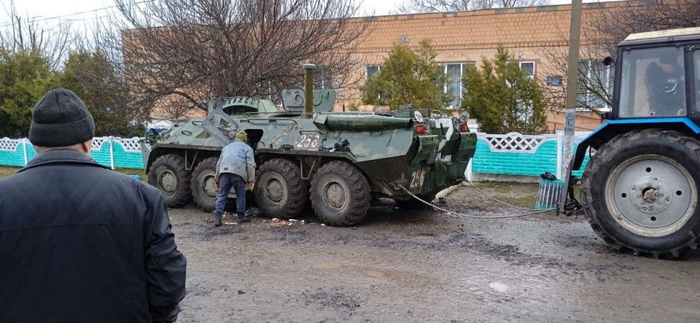 Жители Маложеневки на Николаевщине отгоняют военную технику РФ