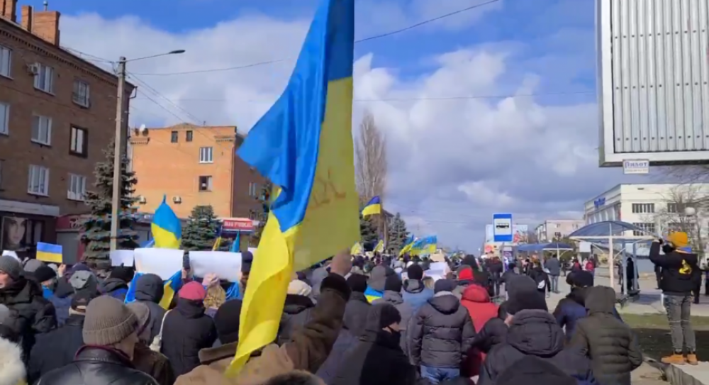 В оккупированной Новой Каховке тысячи украинцев вышли на митинг