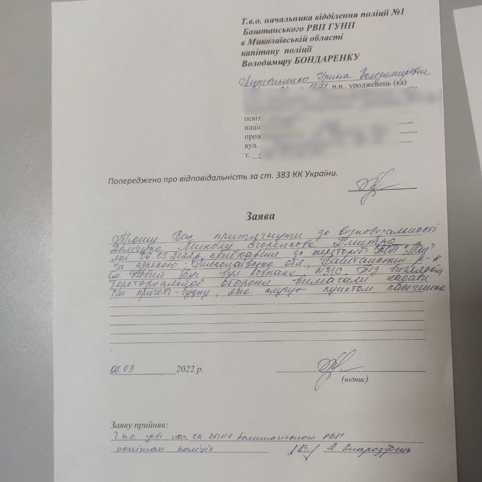 Заявление о вымогательстве приняли в Баштанском райотделе ГУНП в Николаевской области. По словам Яны, сейчас полиция, тероборона и ВСУ гарантируют ее семье безопасность.