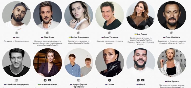 В Украине создали список звезд и политиков, поддерживающих рф или умалчивающих войну