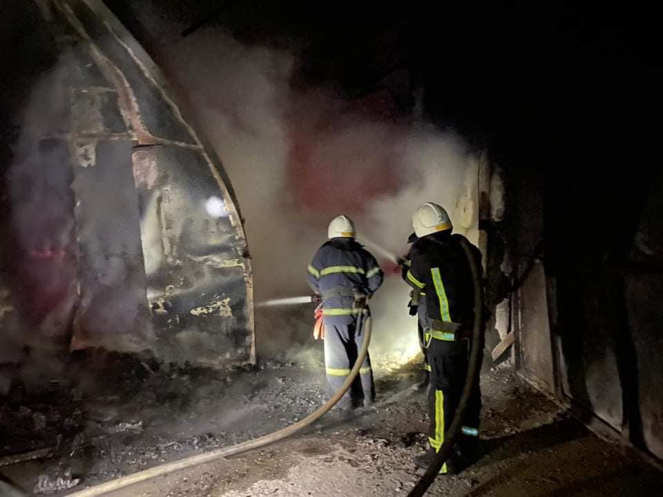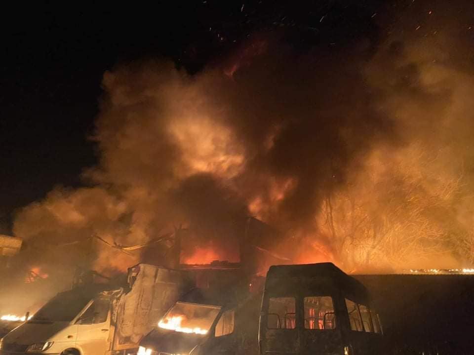 "22 марта в 22:50 в результате вражеских действий со стороны кафиров произошел пожар складского помещения на объекте в Ингульском районе г. Николаева и пяти автомобилей, припаркованные рядом", — уточнили в ведомстве.