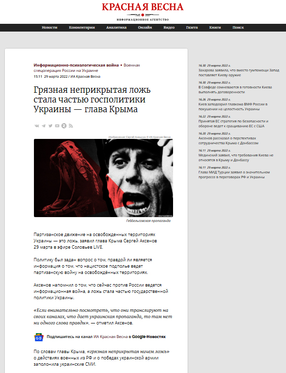 То есть, глава оккупационной власти Крыма Сергей Аксенов, комментируя ситуацию пропагандисту Владимиру Соловьеву, говорил не правду, а то, что хотели бы услышать от него кремлевские хозяева.