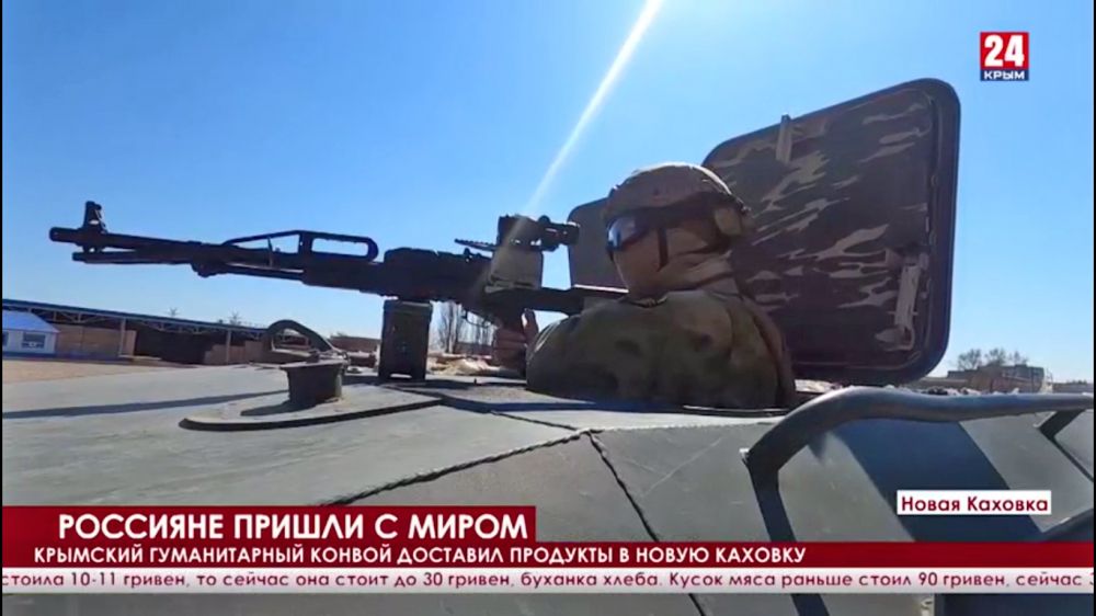 На подконтрольном российским оккупантам пропагандистском телеканале «Крым24» вышел сюжет, лицемерно названный «Россияне пришли с миром», в котором идет речь о ситуации в оккупированных российскими военными городе Новая Каховка и селе Казацкое.