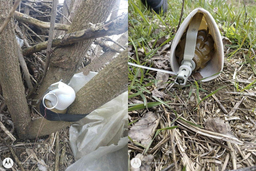 Также спасатели показали замаскированные противопехотные гранаты, скрытые и установленные на растяжках. Дистанция поражения до 200 метров.
