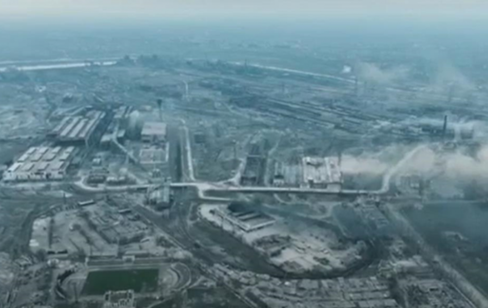 В сети появилось еще одно снятое с воздуха видео разрушенного Мариуполя, на котором, в частности, виден уничтоженный завод Азовсталь.
