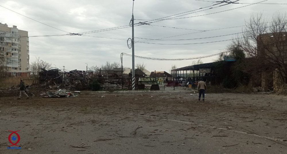 Ранним утром 23 апреля российская ракета попала в Николаеве в помещение заброшенного кафе. Заведение полностью уничтожено, также пострадали соседние многоэтажные дома, в которых повылетали окна.