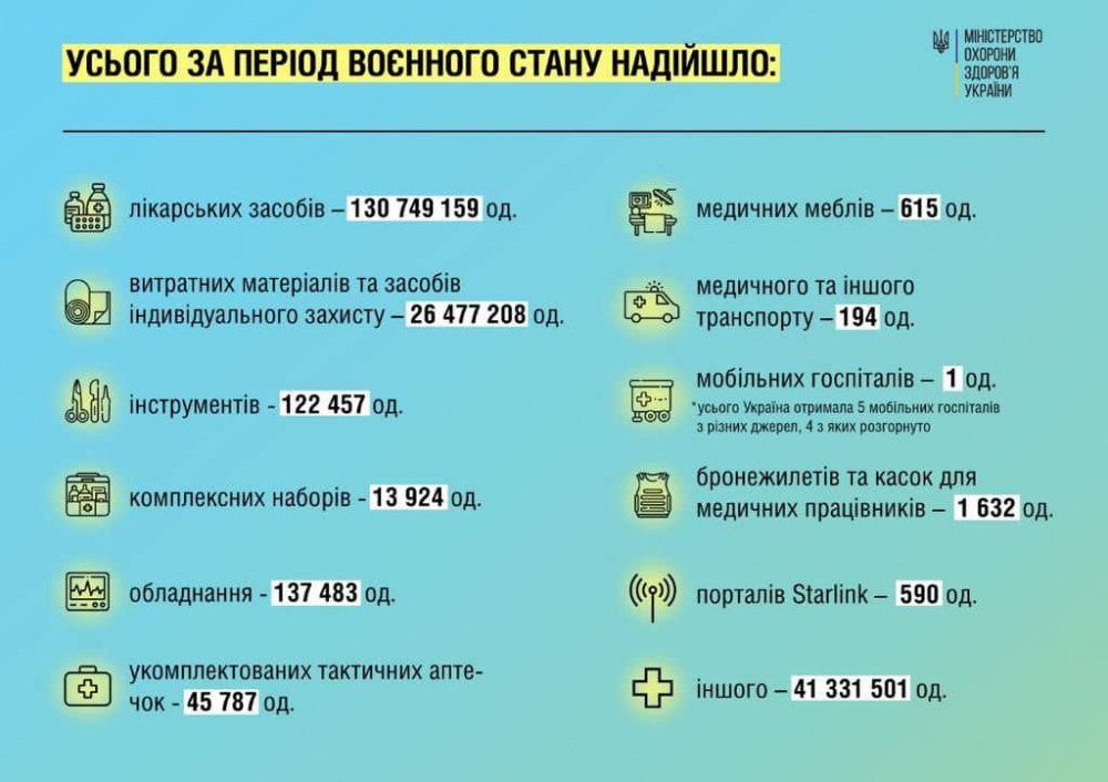 С начала полномасштабной войны Министерство здравоохранения Украины собрало гуманитарной помощи почти на 6 миллиардов гривен.