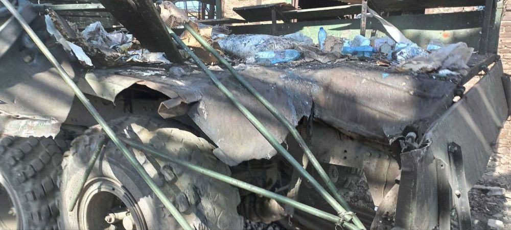 "Последствия обстрела эвакуационного автомобиля", — говорится в сообщении.