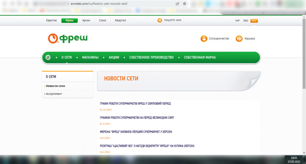 На стайте сети супермаркетов «Фреш», а также на странице сети в Facebook нет сообщений об утрате сетью контроля над херсонским супермаркетом и каких-либо других пояснений касаемо появления там товаров из россии, Беларуси и «ДНР».