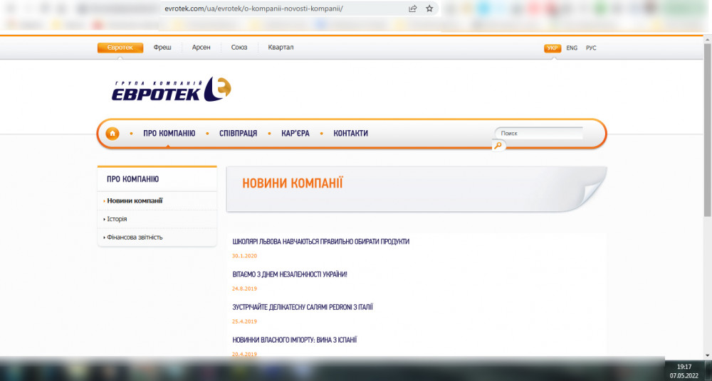 Новостной раздел сайта компании «Евротэк» не обновлялся с 2020 года.