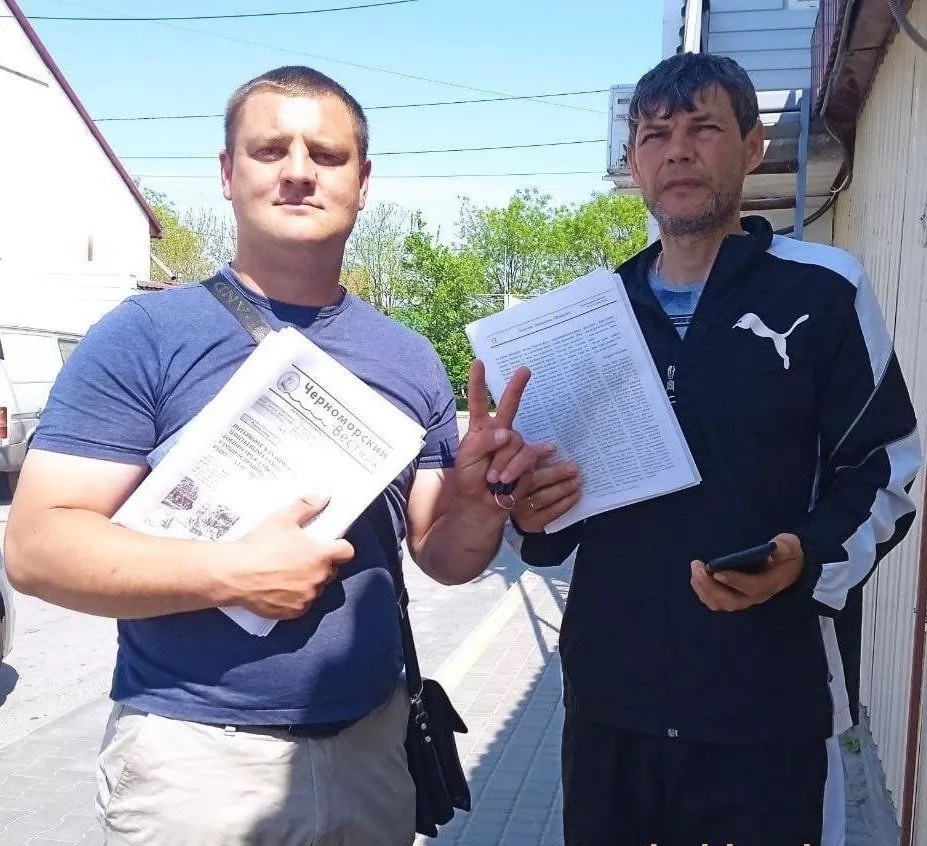 Выяснилось, что один из тех, кто раздает газетки российских оккупантов в Каховке, — предприниматель, торгующий на местном рынке шаурмой.