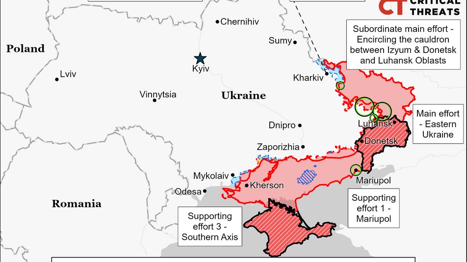 По данным аналитиков, российские войска, вероятно, предпочтут победу в Северодонецком сражении, а не выход к административным границам Донецкой области. В ISW также отметили, что российские войска не продвигались на Славянском направлении из-за неудачных наступательных действий в районе Изюма. Украинская авиация продолжает действовать к северу и востоку от Изюма.