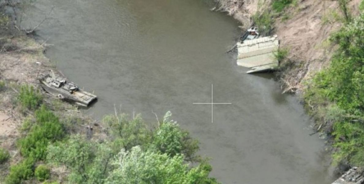 В сети появилось видео места, где украинская армия разбила россиян при попытке переправы через реку Северский Донец в Луганской области 11 мая, когда оккупанты потеряли более 80 единиц техники.