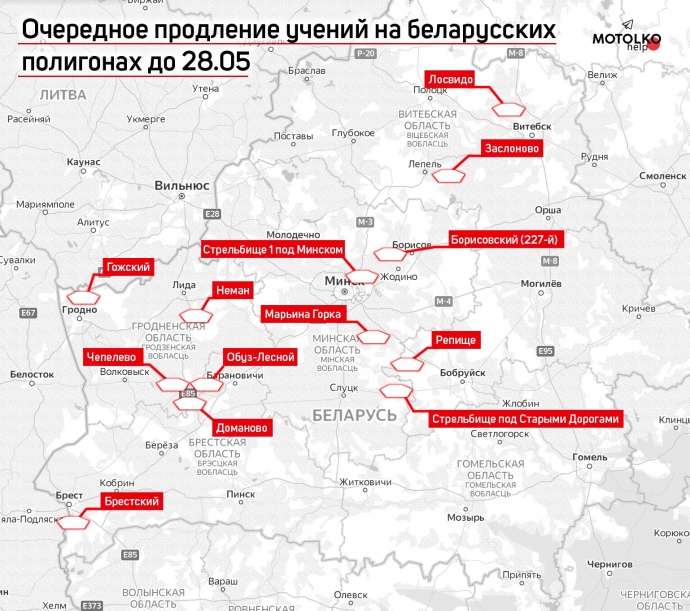 В целом, продление учений на беларусских полигонах на данный момент выглядит следующим образом: