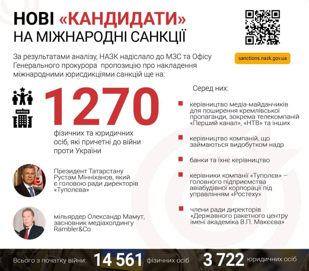 Агентство подготовило новый список из 1270 физических и юридических лиц, причастных к войне против Украины.
