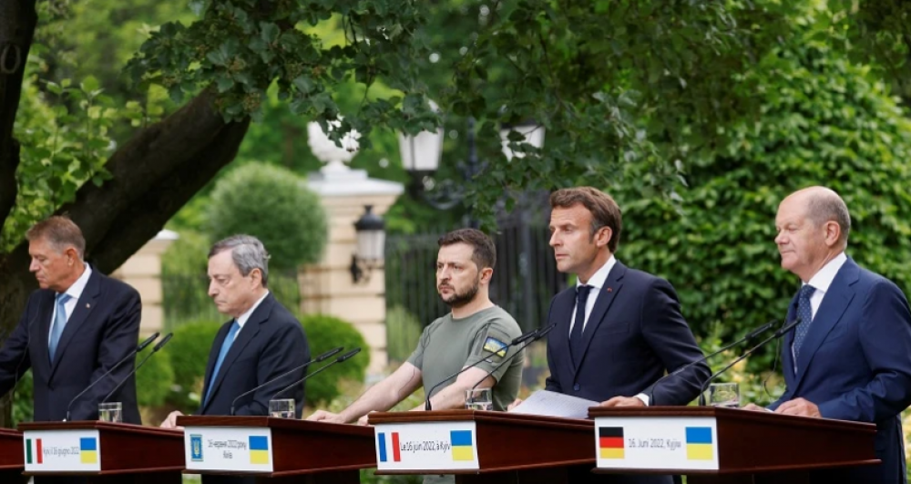 Эммануэль Макрон пояснил, что визит в Украину лидеров трех крупнейших экономик ЕС — Германии, Италии и Франции, а также президента Румынии — преследовал цель формирования единогласия в Евросоюзе относительно первого шага Украины к вступлению, которым является предоставление статуса кандидата.
