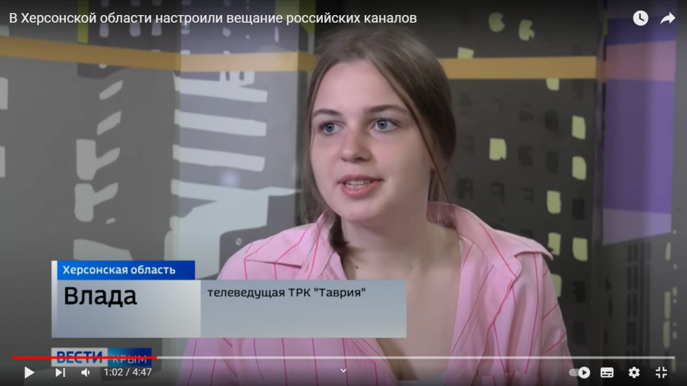 На телеканале «Таврия», который будет распространять российскую пропаганду, одной из ведущих стала… школьница. Некая Влада – ученица 10-го класса одной из херсонских школ. Она приняла участие об объявленном пропагандистами конкурсе на должность ведущего и выиграла этот конкурс.