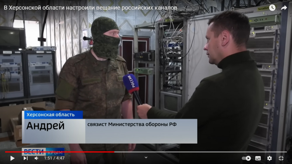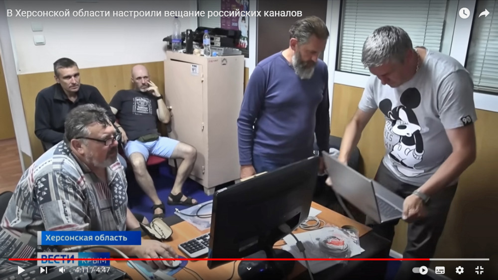 Также телеканал «россия» рассказал, что перенастраивать украинское оборудования для вещания российских каналов помогали российские военные связисты.