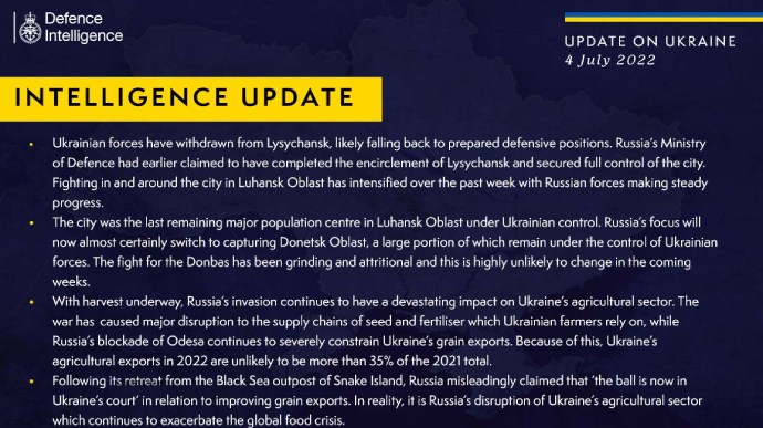 Об этом говорится в ежедневном отчете британской разведки, пишет "Европейская правда".