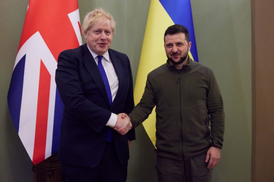 Джонсон один из первых лидеров, посетивших Киев после полномасштабного вторжения россии 24 февраля. Первый неанонсированный визит Джонсон совершил 9 апреля. Он гулял по Крещатику с президентом Украины Владимиром Зеленским и анонсировал помощь в разминировании и вооруженную помощь ВСУ в борьбе против российской армии. Второй раз Джонсон прибыл в Украину 17 июня.