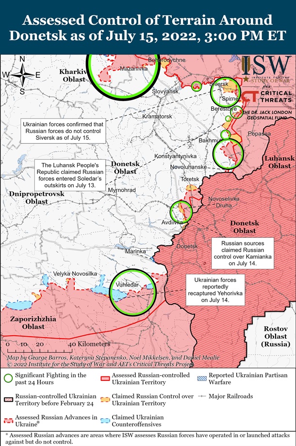 «Эти штурмы могут свидетельствовать о том, что российские войска пытаются возобновить наступательные операции на Донбассе. Наступления все еще невелики и по большей части неудачны. Если оперативная пауза действительно закончилась, россияне, скорее всего, будут продолжать и расширять наступательные действия в ближайшие 72 часа», — говорится в отчете.