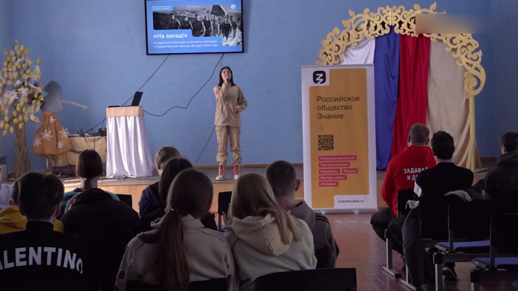 Так, под эгидой «Знания» в учебных заведениях организуются мероприятия по случаю значимых исторических событий, и во время этих мероприятий осуществляется пропагандистская обработка детей и подростков.