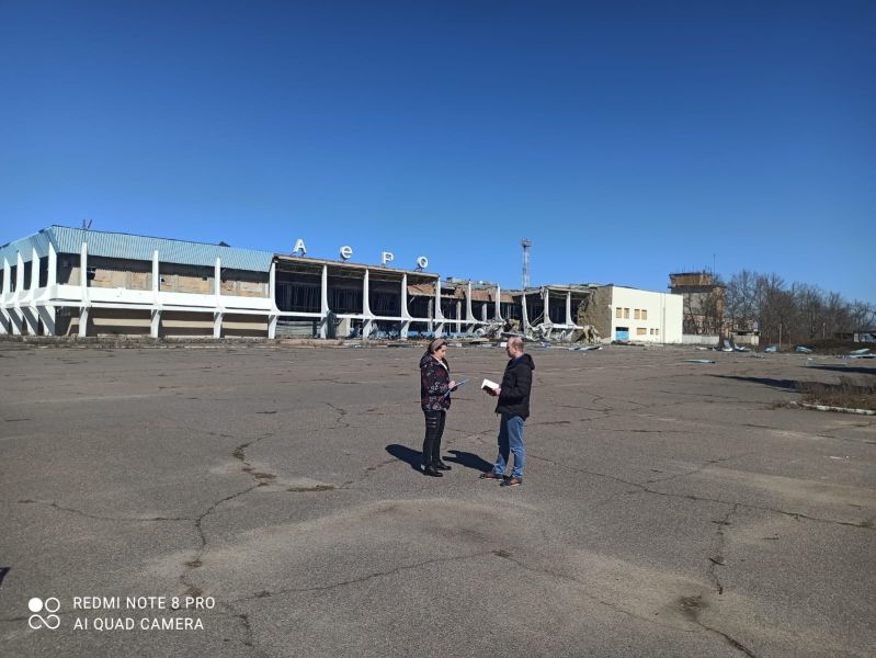По результатам обследования установлено: здание аэровокзала частично разрушено; как следствие произошло засорение строительными отходами общим объемом 102 куб метра земельных ресурсов площадью 5000 кв метров; из-за попадания боеприпасов частично выгорел гаражный бокс, площадь пожара 120 кв. м. Общий размер ущерба составляет 243,4 миллиона гривен”.