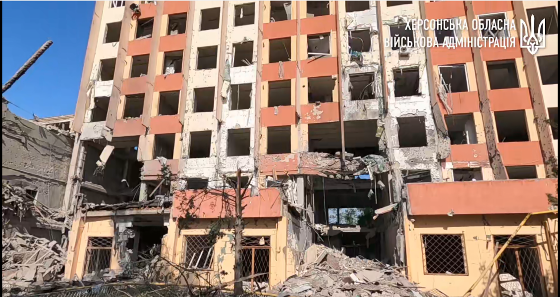 Два подъезда многоэтажного дома разрушены российским ракетным ударом по Херсону